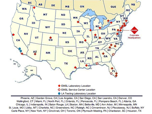 Put EMSL's world renowned pathogen testing experts to work for you. EMSL has over 30 laboratories across North America and their corporate laboratory alone offers over 100,000 square feet of laboratory space and support services.